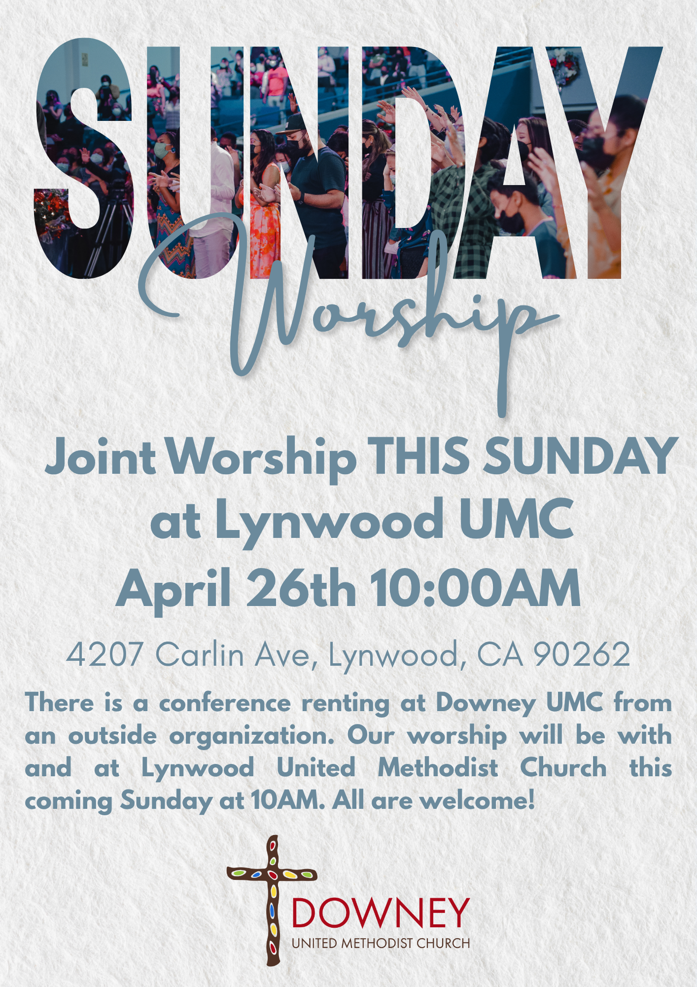 At Downey United Methodist, we believe in gathering in community, worshipping together, engaging in mission, leading with grace, and living with joy. No matter where you’re from or what your background is, there is a place for you here at Downey UMC.